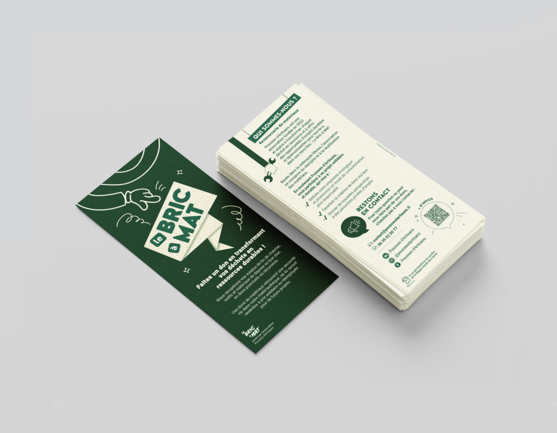 - Un flyer détaillé qui présente l’association Pousses d’Artisans ainsi que leurs actions, une sorte de carte de visite de l’association.