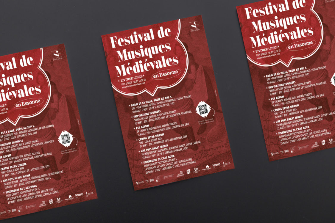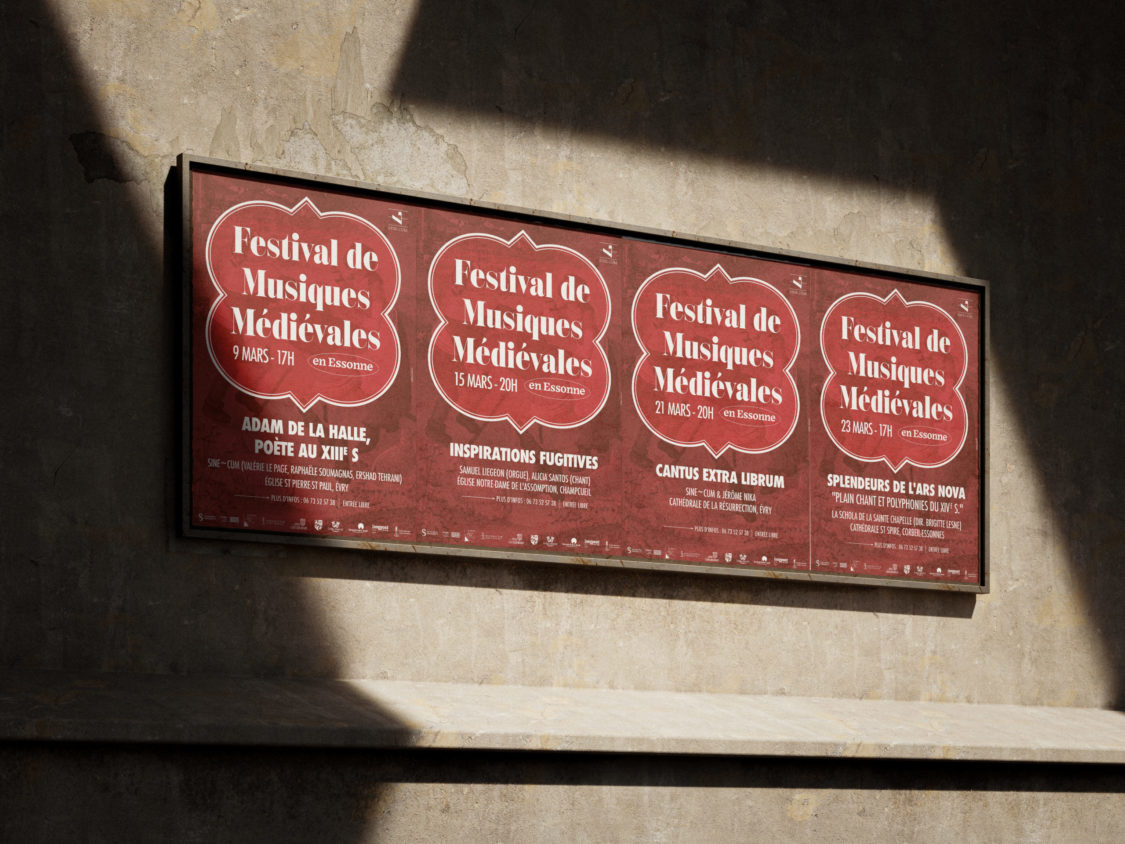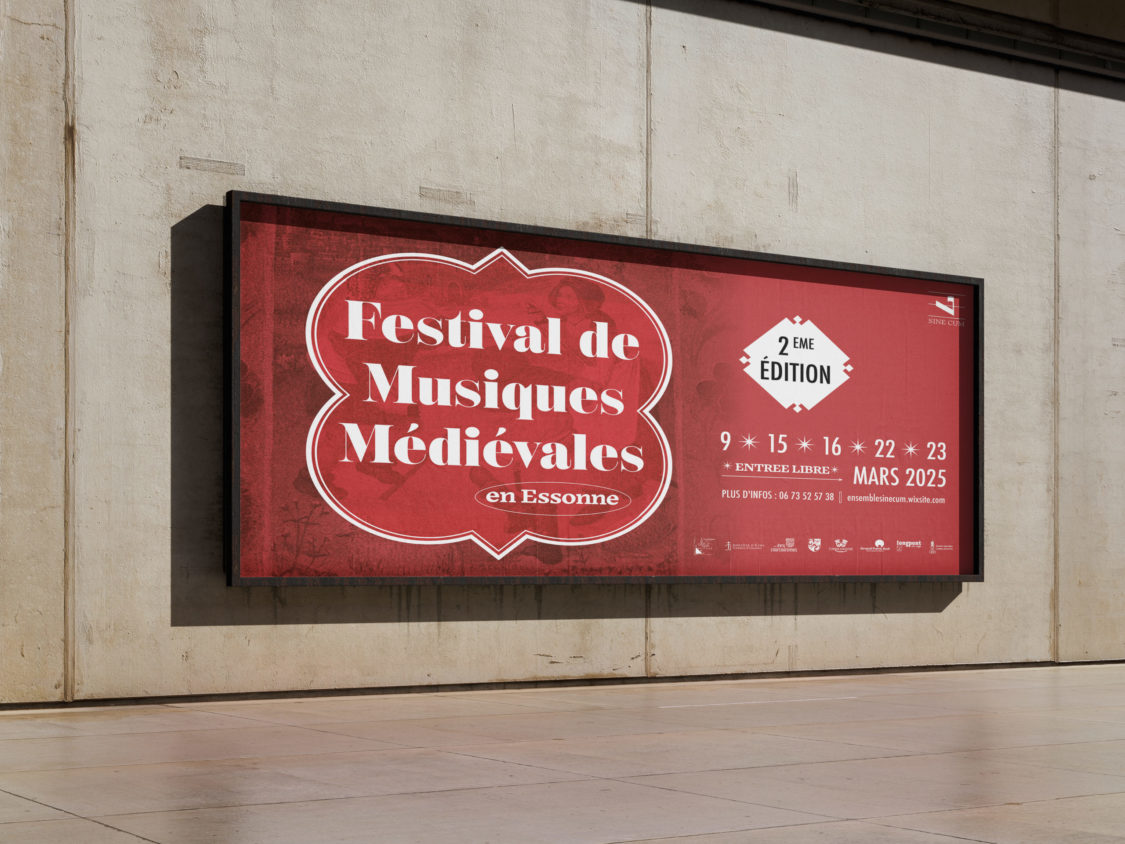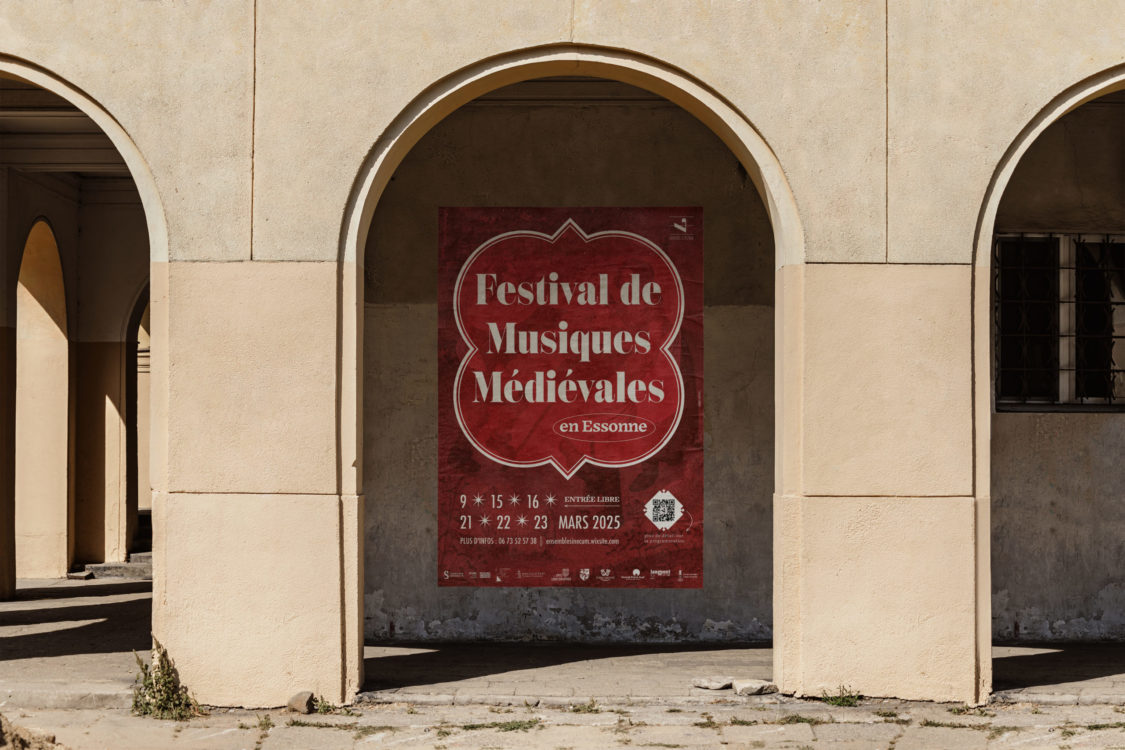 Conception de l’affiche et des déclinaisons de l’édition 2025, utilisation d’une iconographie fournit par le client et d’un langage graphique évoquant l’univers médiévale. Il avait aussi été demandé de créer une composition typographique à deux niveaux, une assez forte pour le titre et plus simple pour les informations pratiques.