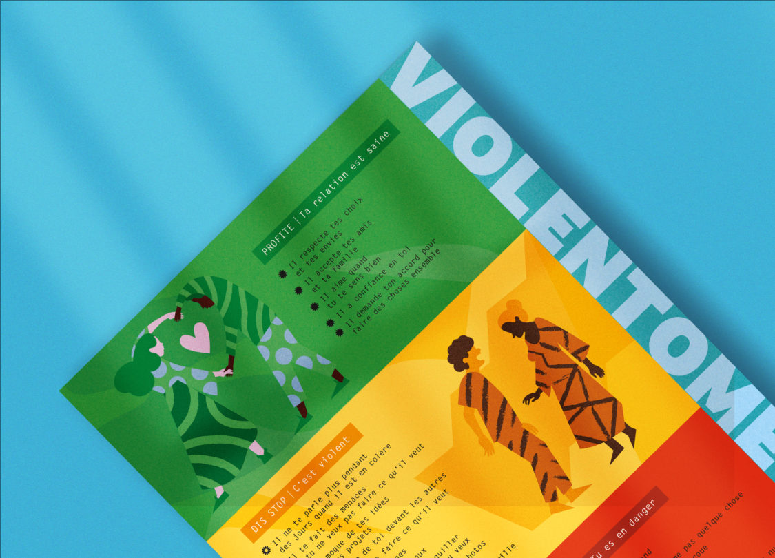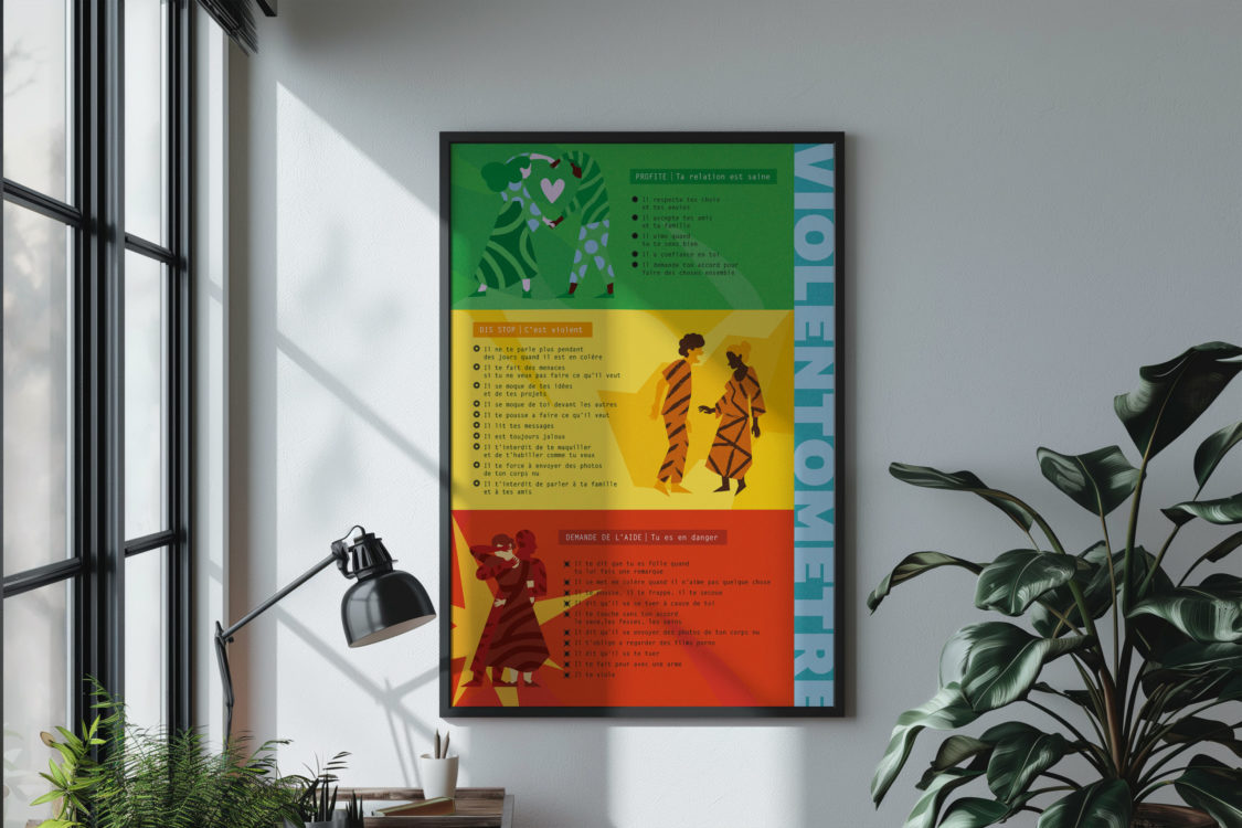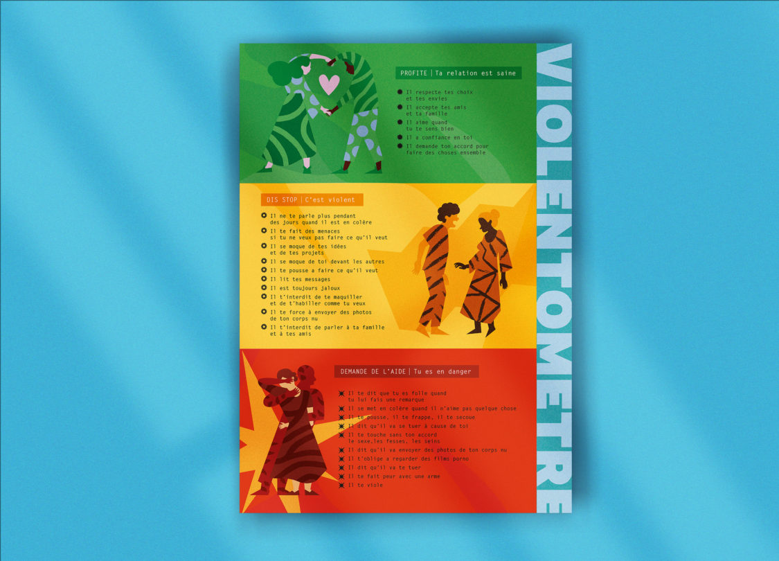 Conception d’un violentomètre, » un outil simple et utile pour sensibiliser aux violences conjugales en « mesurant » si sa relation amoureuse est basée sur le consentement et comporte ou pas des violences ». Un projet qui associe graphisme et illustration.